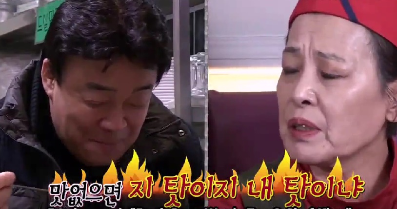 맛 없으면 지 탓이지 내 탓이냐며 오히러 화를 냈습니다 그리고 3대천왕에 순두부찌개가 나온적도 없었다고 합니다