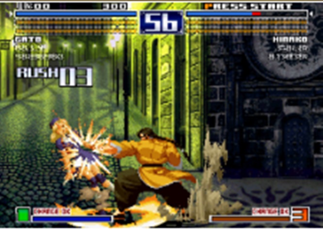 더 킹 오브 파이터즈 2003(The King of Fighters 2003) 입니다 2003년 12월 12일에 오락실용으로 출시되었고 3월 18일에는 가정용 네오지오 콘솔로도 나왔습니다 3대3 대전으로 멀티 시프트 시스템 도입을 했으면 리더는 리더 초필살기를 사용할수 있게되었습니다.