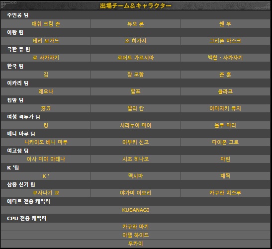 KOF 공략 - KOF 전시리즈 숨겨진 캐릭터 선택법