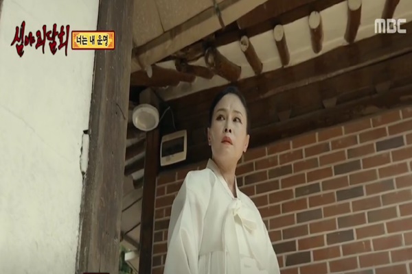 그 말에 다들 어리둥절한 와중이였는데 부채로 시어머니를 가리켰다