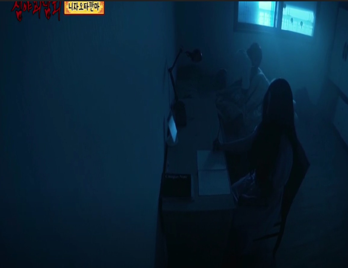 눈을 떠서 봤더니 웬 여자가 책상앞에 앉아서 노트에 글을 쓰고 있었다 너무 놀라서 비명을 지르고 불을 켰는데 아무것도 보이지 않았다. 피곤해서 헛것을 봤나 싶어서 넘겼는데 그것이 시작이었다.