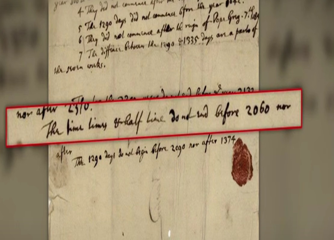2007년 이스라엘 뉴턴 비밀 전시회에서 공개된 뉴턴 육필 원고에 뉴턴이 계산한 인류 멸망 날짜가 기록 되었습니다