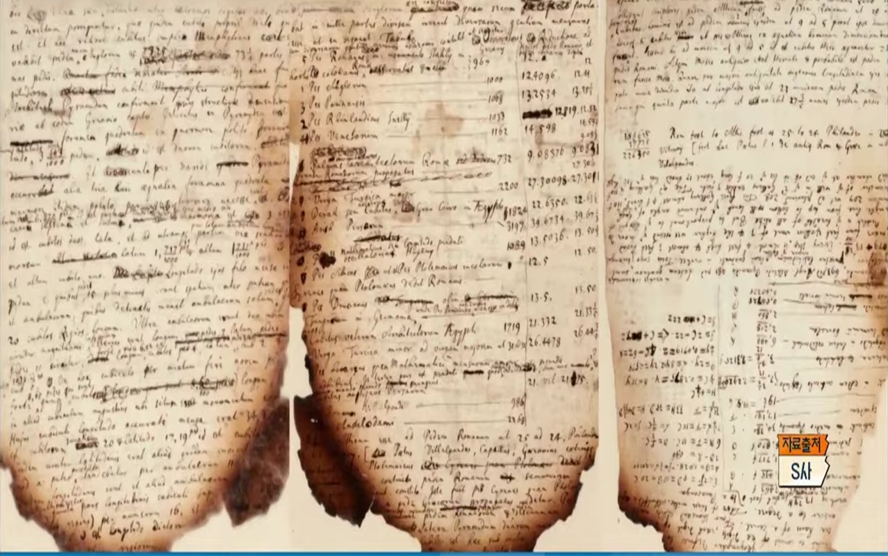 3페이지 분량의 이 노트는 200여 년 만에 발견되었는데 1680년대에 작성한걸로 추정되었으며 양피지 일부가 불에 타 온전한 모습은 아니였지만 미공개 희귀 자료로 뉴턴의 과학전 예언이 담긴 노트였다고 합니다.