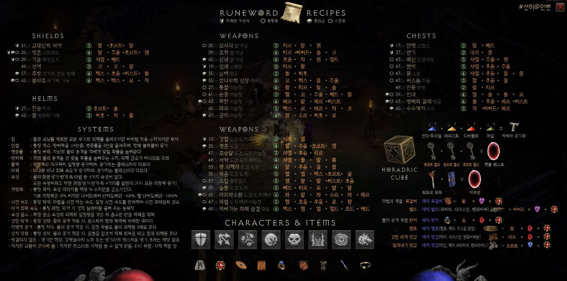이외에도 게임 폰트, 소리, 캐릭터 변환 등 다른걸로 하고 싶으신분들은 디아블로2 애드온/모드 자료실에서 설명을 보시고 따라하셔서 바꾸시면 됩니다.