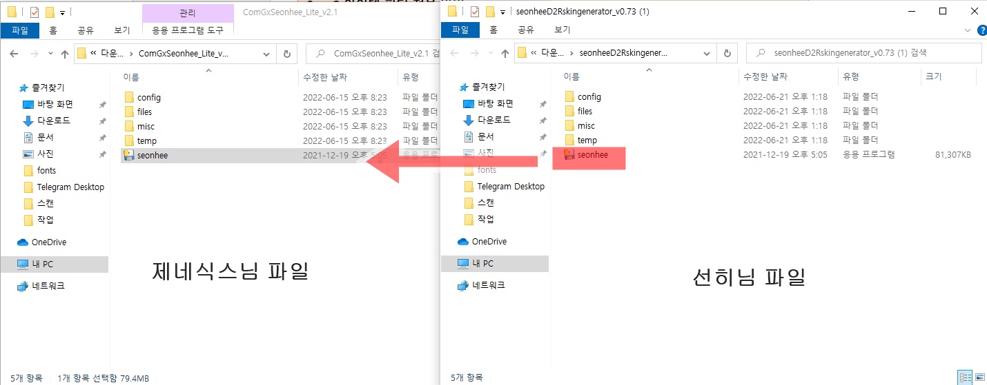그리고 선히님 폴더에 있는 seonhee 실행 파일만 제네식스님 파일로 옮겨줍니다