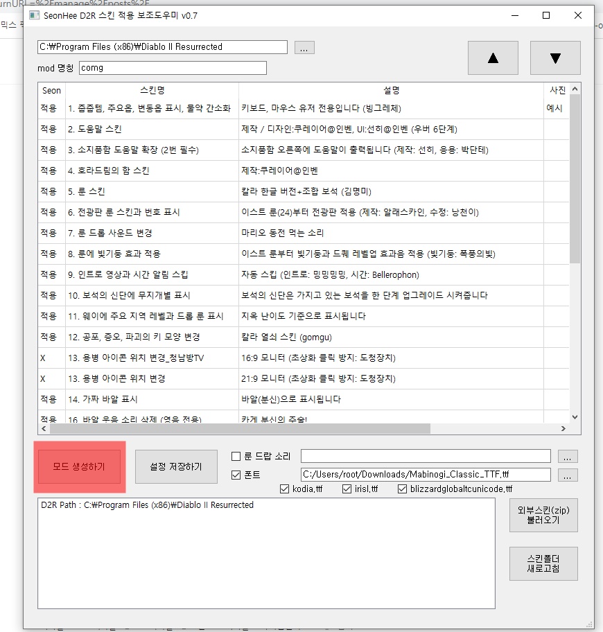 D2R 스킨 적용 도우미 프로그램 v0.7 - 디아블로2 애드온/모드 자료실