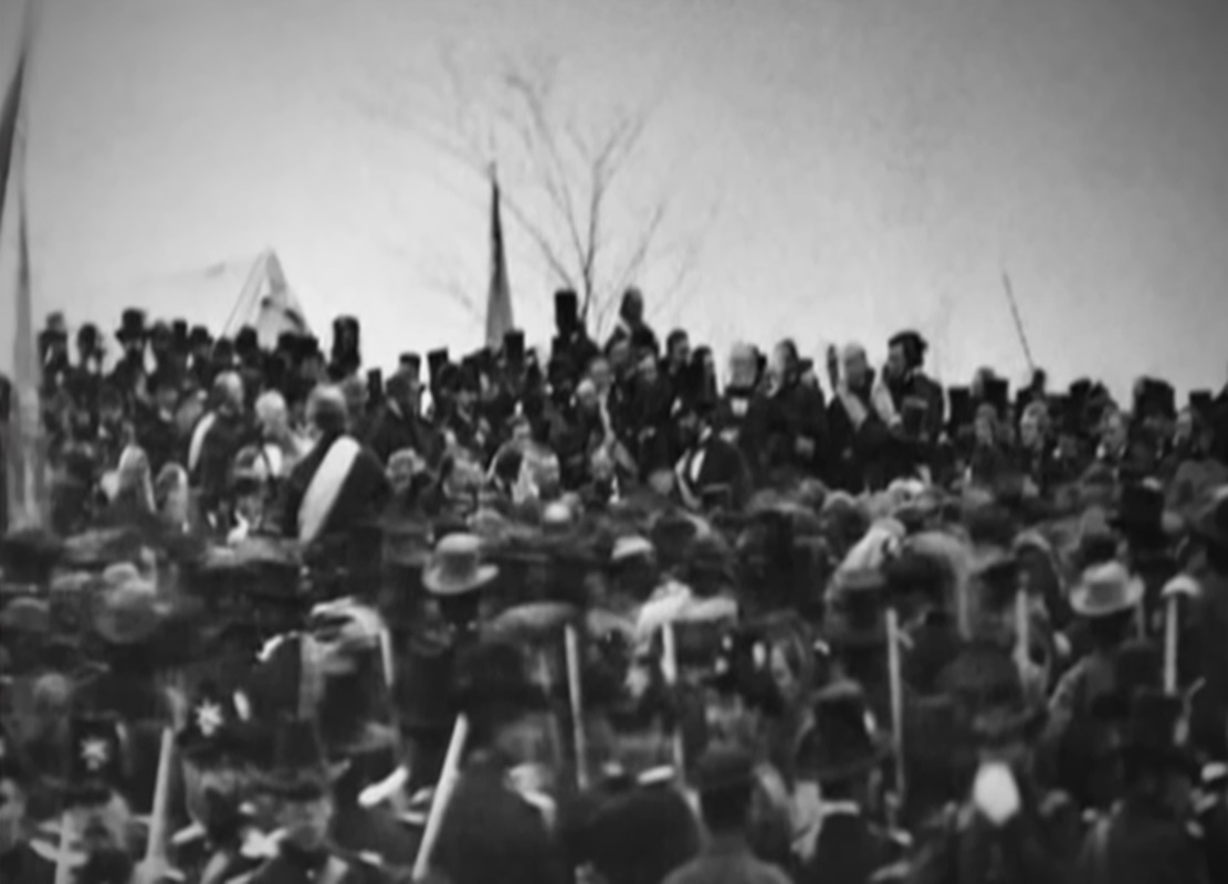 1863년 링컨의 게티즈버그 연설 현장에서 촬영된 사진인데 남북 전쟁 중 열린 연설로 혹시 모를위험에 대비해서 연설장은철저히 통제되었고 어린아이의 입장은 허용되지 않았습니다.