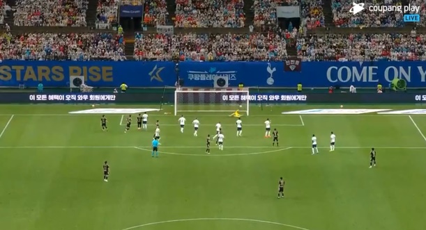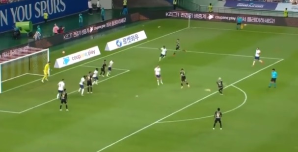 4대3으로 k리그가 추격을 했지만 프리킥을 얻은 토트넘의 케인의 골로 5대3으로 2골차로 벌어지고 후반 84분 k리그 선수의 패스 미스로 인해 손흥민에게 볼이 갔고 그 기회를 놓치지 않고 골을 성공 시켰습니다.