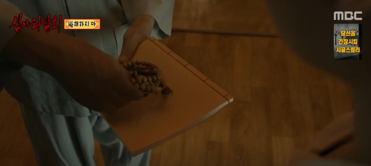 그리고 스님은 불경책 한 권, 오색실, 백팔 염주를 건네주셨다